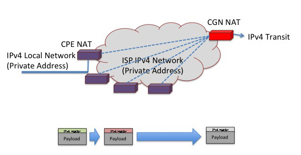 The advantage of the CGN approach is that for the customer nothing changes. There is no need for any customers to upgrade their NAT equipment or change them in any way, and for many service providers this is probably sufficient motivation to head down this path. The disadvantages of this approach lie in the scaling properties when looking at very large deployments, and the issues of application-level translation, where the NAT attempts to be "helpful" by performing deep packet inspection and rewriting what it thinks are IP addresses found in packet payloads. Having one NAT do this is bad enough, but loading them up in sequence is a recipe for trouble! Are there alternatives?