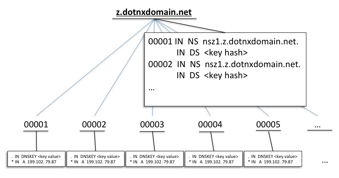 2.  A EDC x.y.z.  z.  NS for “y.” + RRSIG